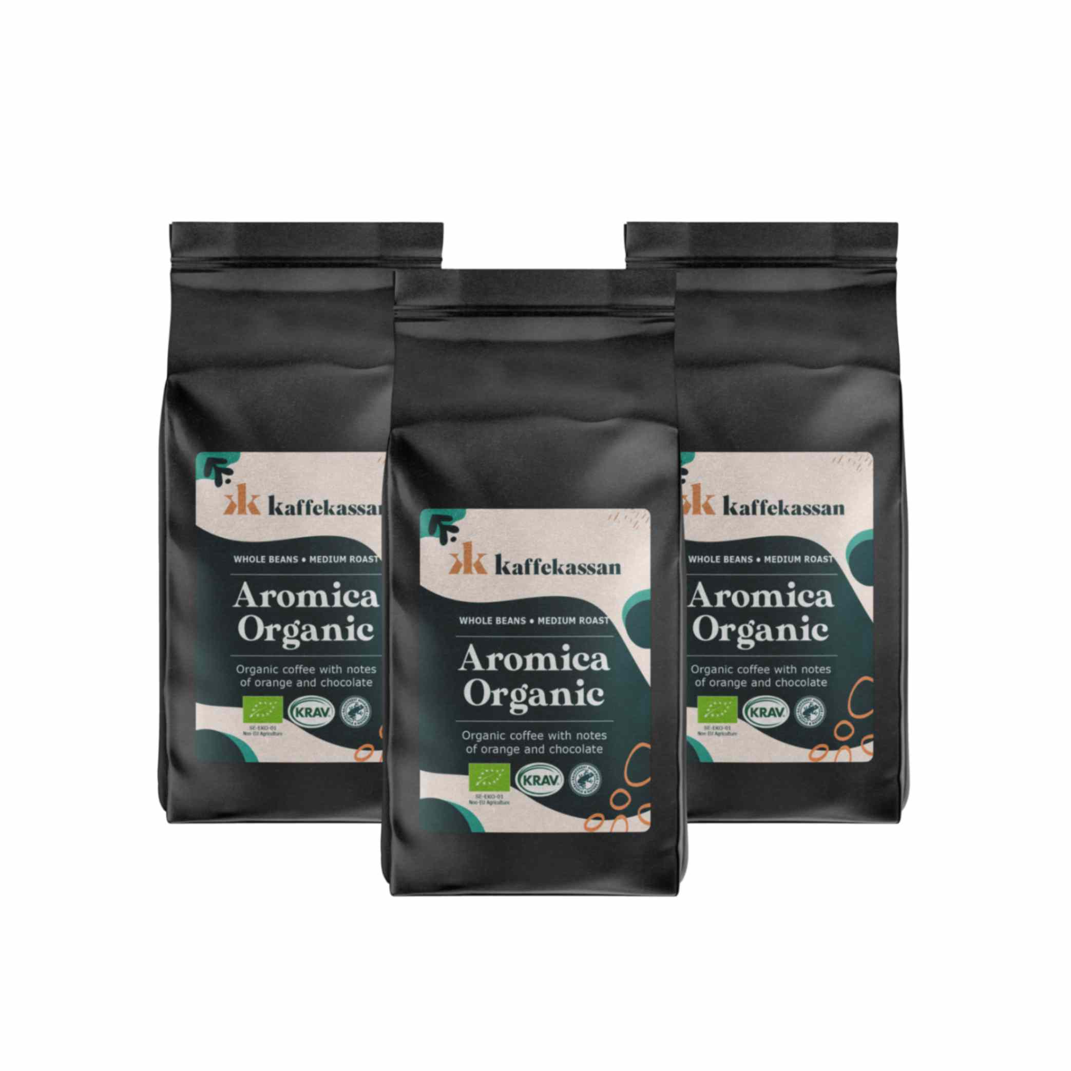 Aromica Organic är en spännande kaffesmak med rötter från Kongo och Honduras. Denna blandning är mångsidig och passar både för espresso och att mala själv för att brygga en underbar kopp vanligt kaffe.